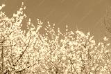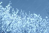 blooming branches white blossoms, against backdrop of blue sky, concept spring season, Spring Celebrations, environmental, nature in detail