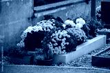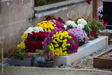 Cimetière avec des sépultures couvertes de fleurs fraiches à l'occasion de la Toussaint. France