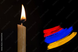 mourning candle burning front of flag Armenia,, memory of heroes served country, grief over loss, national unity in challenging times, state's history
