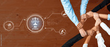 A dynamic image showcasing hands coming together on a surface, representing teamwork and collaboration in discussing the vital topic of AI ethics and responsible technology use. Trope