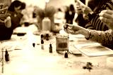 Woman creating handmade scented soy candle during workshop
