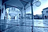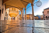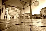 Ancient Italian square arches and architecture in town of Udine
