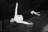 Business woman shot in the chest in old elevator