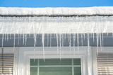 winter house with icicle and snow on the roof