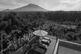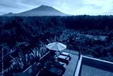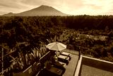 Swimming pool and sunbeds at luxury resort in Bali with volcano view Indonesia