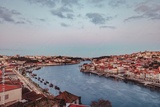 Wander through the charming streets of Portugal's Porto and Lisbon as the sun sets, casting a warm glow over the colorful buildings and tranquil river