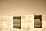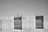 Visitors admire breathtaking river views in Portugal, framed by ancient stone walls. Majestic bridges connect Porto and Lisbon, with sunlight glistening on the water