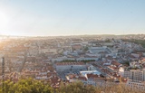 Overlooking the vibrant heart of Lisbon, visitors admire the stunning rooftops and historic architecture bathed in golden sunlight, capturing the essence of this beautiful city