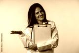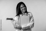 Woman doctor or nurse with clipboard with blank paper isolated on grey background