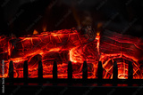 Glowing firewood burning in a fireplace with red hot embers