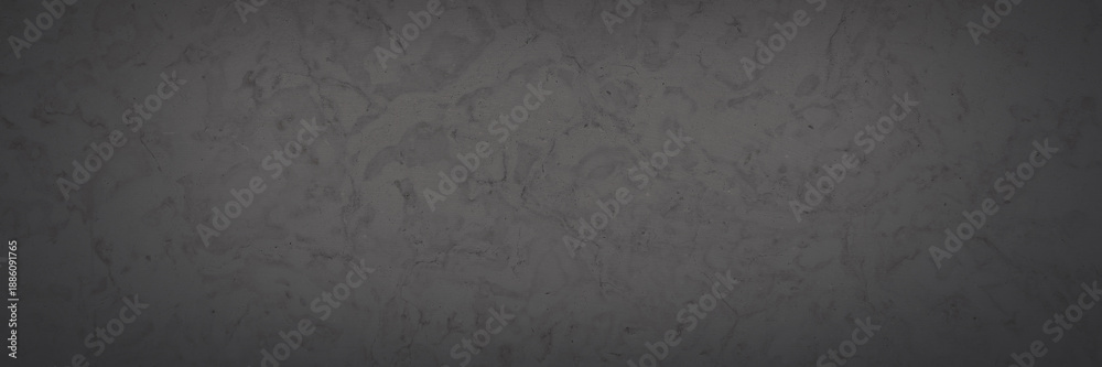 Dark wide panoramic background. Natural rock with patterns on the surface. Dolomite texture. Solid stone background for design. Shaded faded texture with vignette.