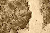 Peeling paint on the wall. Old concrete wall with cracked flaking paint. Weathered rough painted surface with patterns of cracks and peeling. Grunge texture for background and design. High resolution.
