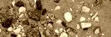 Concrete wall texture with pebbles. Decorative rough concrete surface with white, black and gray stones. Wide panoramic texture for background and design.