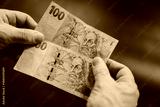Czech koruna banknotes against a soft blurred background. Concept of budgeting, cash transactions, income management and financial decision-making.