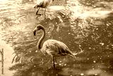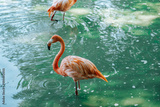 flamingo standing in calm water. wildlife composition with peaceful atmosphere, copy space and natural tones.Concept of elegance, solitude,balance,mindfulness