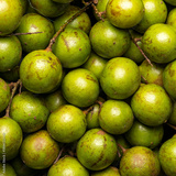 Mamoncillos for sale in a traditional Colombian market, highlighting the color, texture, and freshness of this tropical fruit - Melicoccus bijugatus