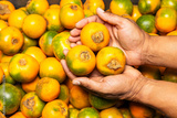 Solanum quitoense - Naranjilla in the hands of the farmer in the Colombian market