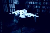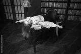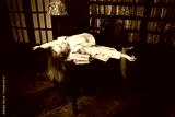 Crime scene (imitation). Strangled young student in the classical library