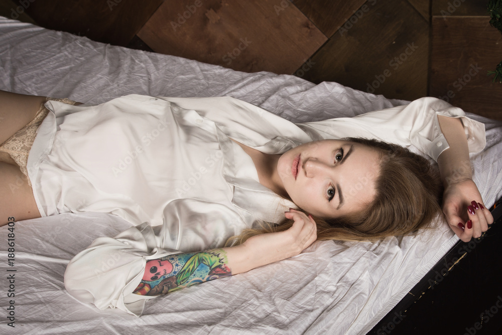 Sexual emotional attractive woman posing in a boudoir