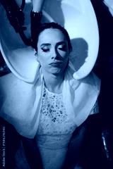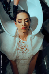 Bored Client sits Uncomfortable at the Hair Washing Sink. Dissatisfied customer feels awkward and stiff at the hair washing station