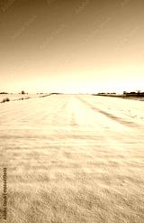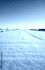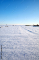 A farm field covered with snow in winter.