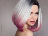 Ombre bob short hairstyle. Beautiful hair coloring woman. Fashion Trendy haircut. Blond model with short shiny hairstyle. Concept Coloring Hair. Beauty Salon.