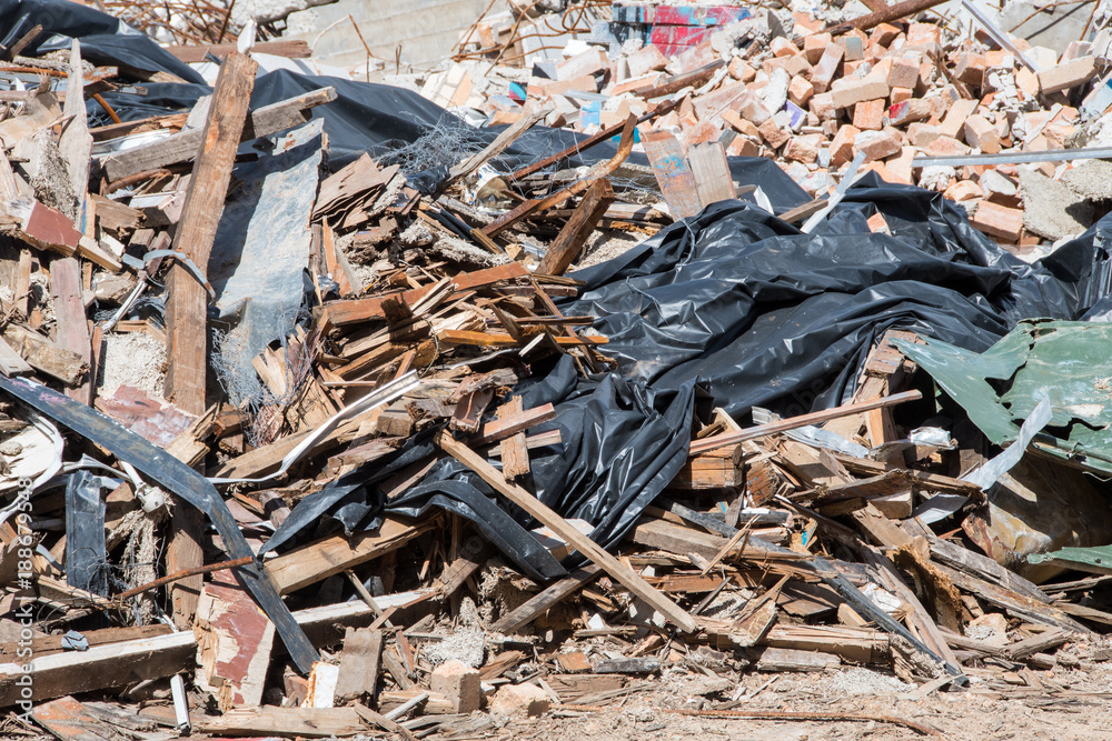 Pile of rubble on building site during renovations