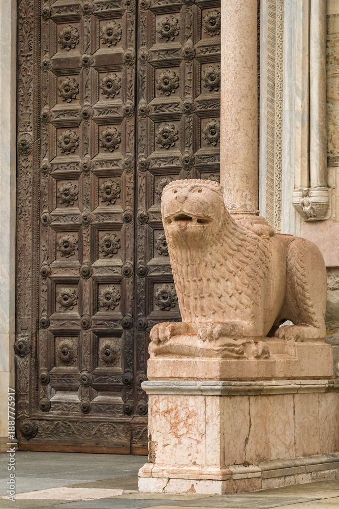 Marble Lion Sculpture at the Entrance of Parma Cathedral