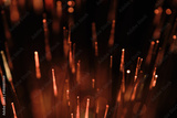 Abstract orange light sparks, fiber optic effect, energy concept. Luminous particles, information flow, speed, warm light.