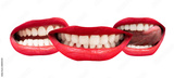 Sexy sensual female mouth with tongue, white teeth and red lipstick color collage set isolated on white background