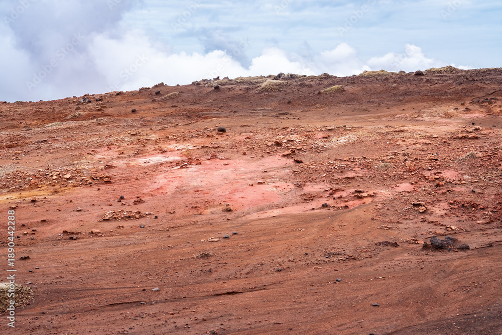 red earth in the Gunnuhver geothermal area on the Reykjanes Peninsula during a day in March