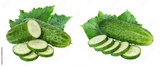 Sliced cucumber isolated on white background with full depth of field,