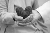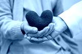 Doctor giving a red heart to senior patient in hospital.