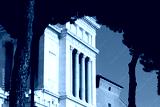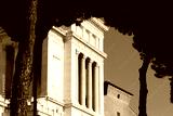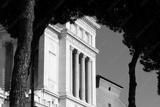 Neoclassical Architecture of the Altare della Patria in Rome Italy Featuring White Marble Corinthian Columns and Reliefs Framed by Iconic Mediterranean Pine Trees