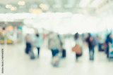 Blurred background,Traveler with baggage at Terminal Departure Check-in at airport with bokeh light,transportation concept.