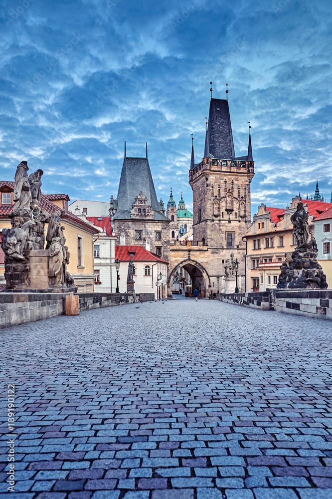 Sunrise on Charles bridge in Prague Czech Republic picturesque