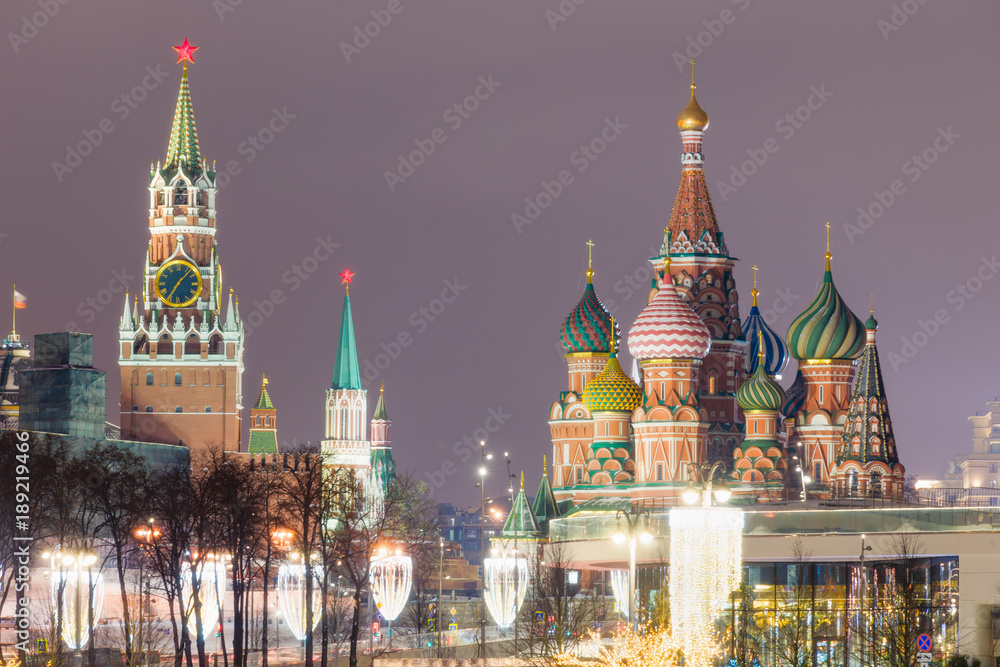 View of Red Square with St. Basil's Cathedral and Kremlin. Moscow. Russia.