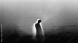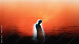 Contemporary poster fashion figure with glowing outline in soft noise. Concept of experimental fashion, bold visual identity, futuristic styling, high fashion editorial, creative self expression.