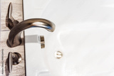 Staging modern bathroom with closeup of shower tub in model home, apartment or house