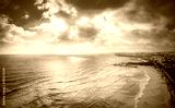 Beautiful cloudscape over ocean coastline at sunset. Kilcunda, Victoria, Australia