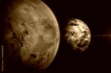 Mars and Earth planets in outer space. Planets of the Solar system, space scene. Colonization of Mars.