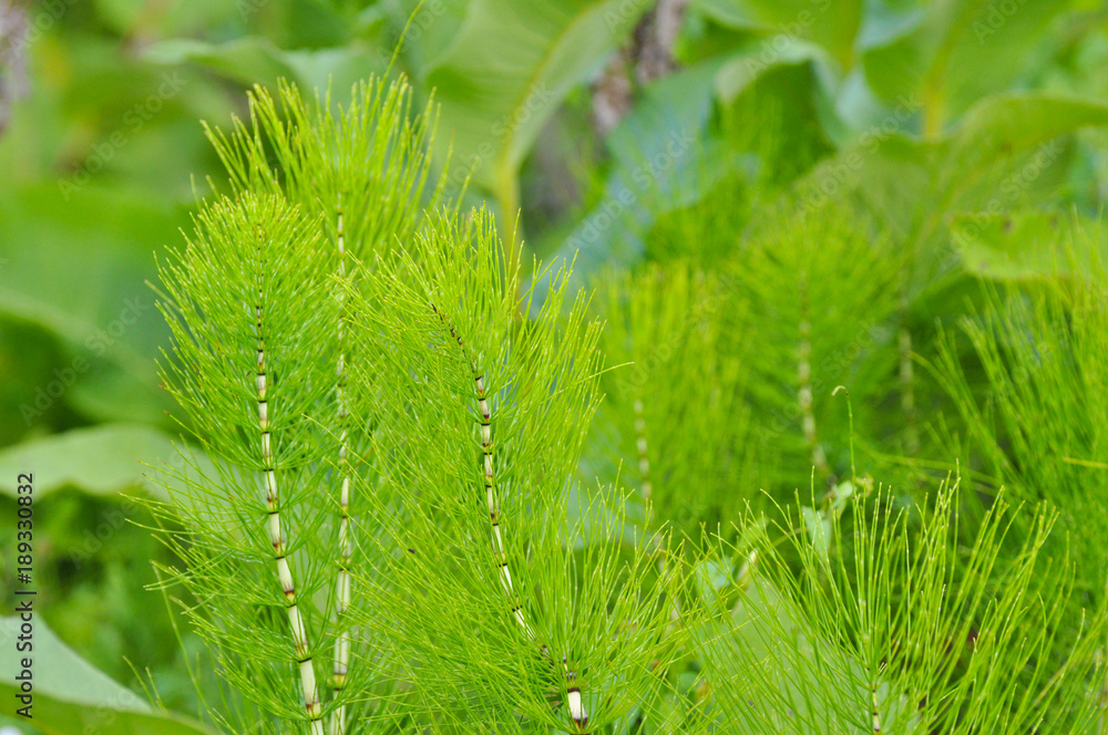 Horsetail (Equisetum) healing plant bunch background. Equisetum arvense or Snake grass is a medicinal plant