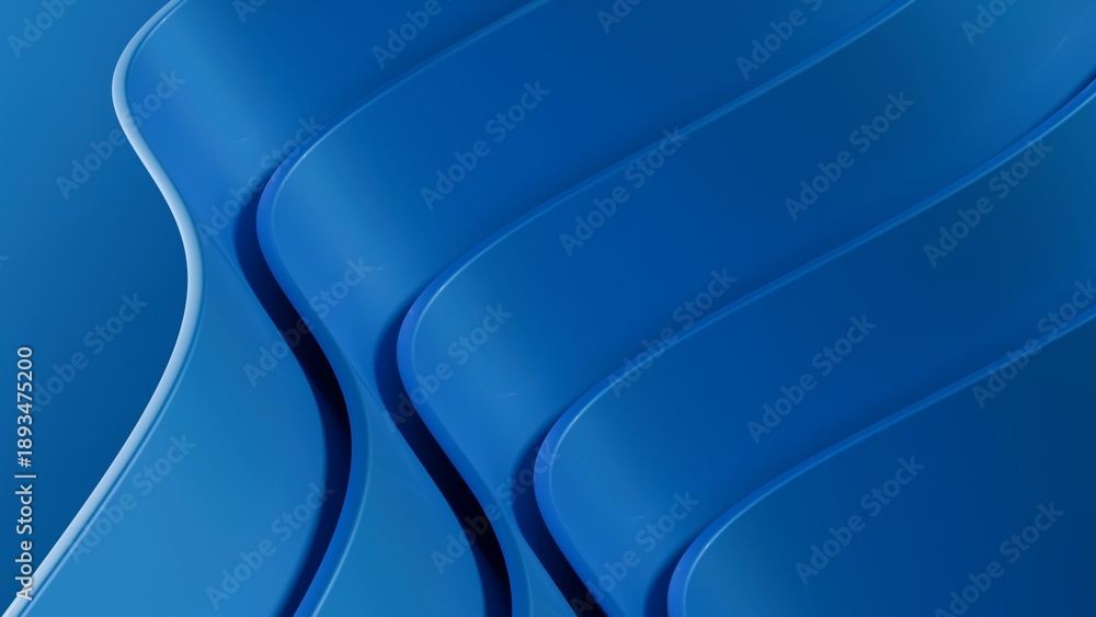 Abstract wavy curved 3d render. Blue soft layers of plastic with lines, folds, ruffles. Modern wallpaper, texture pattern. 3D Illustration