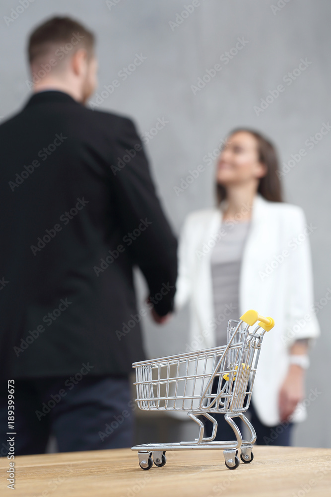 Biznes, zakupy w sieci. Koncepcja biznesowa. Wózek sklepowy symbol zakupów.