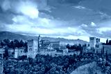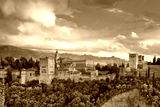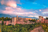 Palace and fortress complex Alhambra with Comares Tower, Palacios Nazaries and Palace of Charles V during sunset in Granada, Andalusia, Spain
