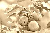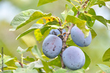 Ripe plums on branch. Plum plantation with a ripe plums on tree