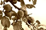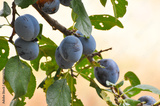Ripe plums on branch. Plum plantation with a ripe plums on tree