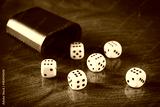 Got lucky in dice. Gambling at casino. Playing dice on a wooden table. Retro style