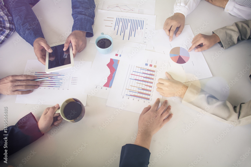 Business team working on laptop, while sitting at office. Business people.