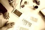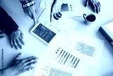 Businessman making presentation with his colleagues and business tablet digital computer at the office as concept